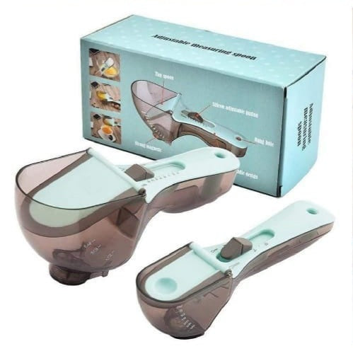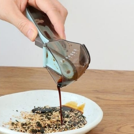 The measuring range is 5ml-130ml,1/2 teaspoon-9 tablespoons, 1/8 cup-1/2 cup. Large spoon: 18 x 6 x 7.2cm. Small spoon: 16 x 3.8 x 4.9cm.