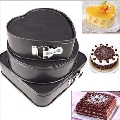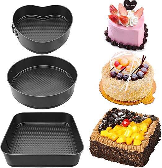 Enjoy baking with three different shaped baking molds. Non stick - Easy to clean. Sizes: Heart Shaped 24cm, Round Shaped 26cm, Square Shaped 28cm