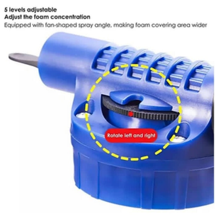 Adjustable foam control infuses massive amounts of air into the soap and water to create a blanket of thick foam, just like a professional carwash. The air-charged cleansing foam lifts dirt and dust from the surface and rinses it away without leaving behind any film or residue.