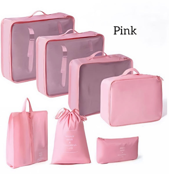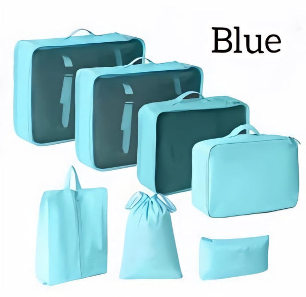 Pack Smart: This set of 7 packing cubes in different sizes helps organize clothes, toiletries and more for neat storage while travelling. Includes: