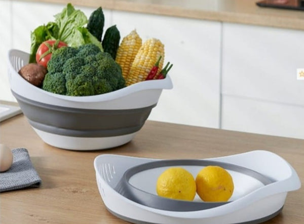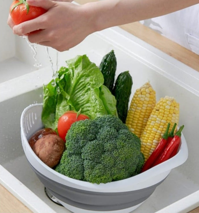 Can be used to drain and rinse all kinds of foods, from pasta to fruits and vegetables. Modern design compliments any kitchen. Size 30cm x 12-25cm.