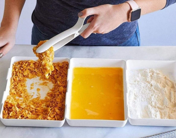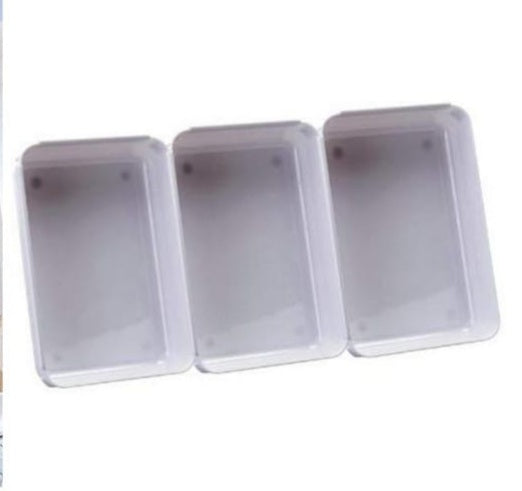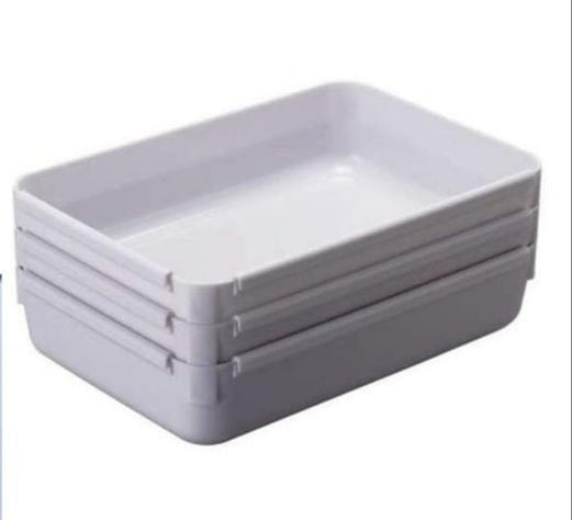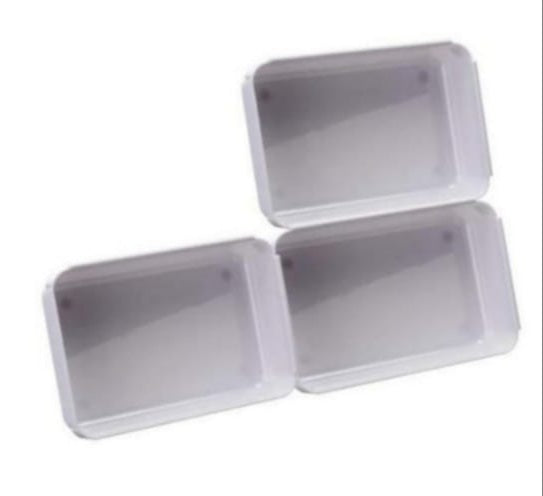 3 Piece interlocking stackable trays. Ideal for preparing, serving, and storing. Interlocking trays help reduce drips on the counter. Food safe plastic.