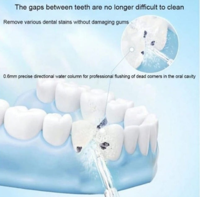 Portable intelligent teeth cleaning water flosser. Strong flow electric rechargeable oral irrigator for gum, teeth and braces care. Adjustable intensity. USB charging. 200ml tank.