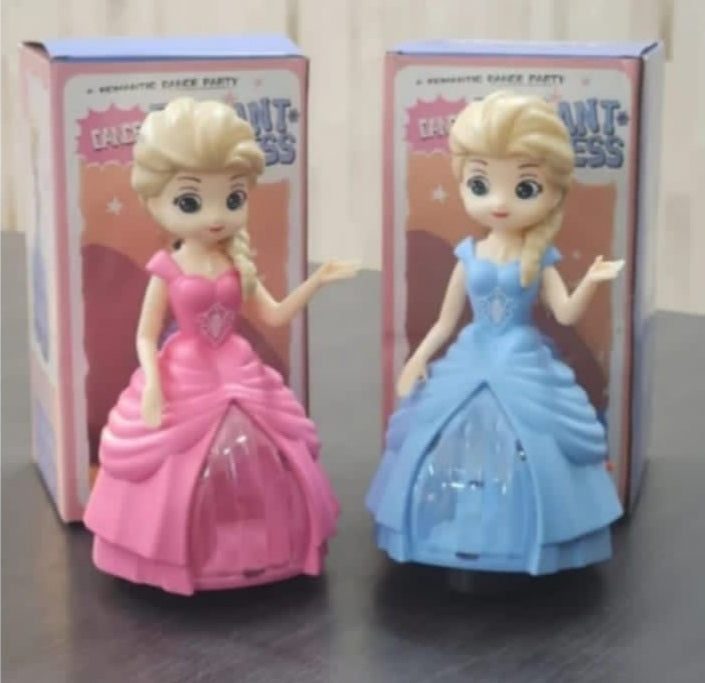 Battery operated dancing princess doll with flashing lights and music. 2 x AA batteries required.