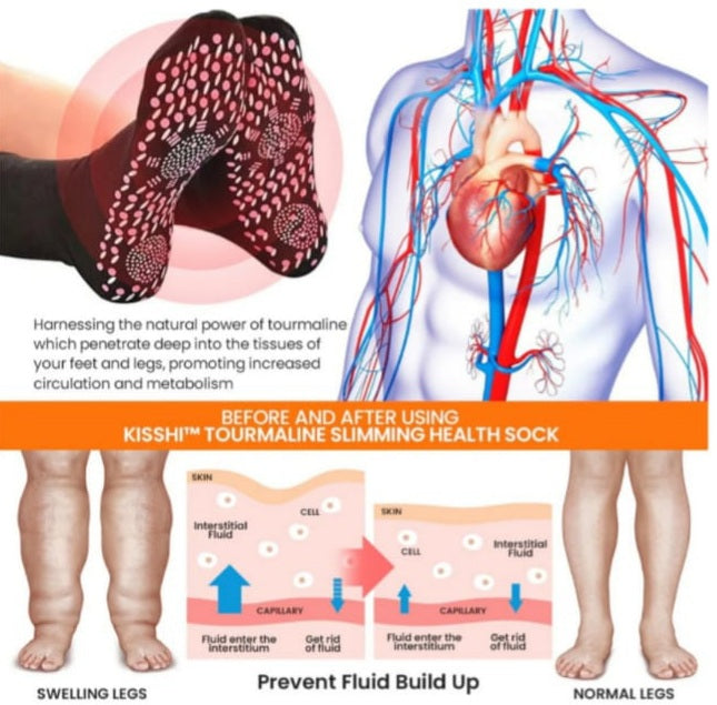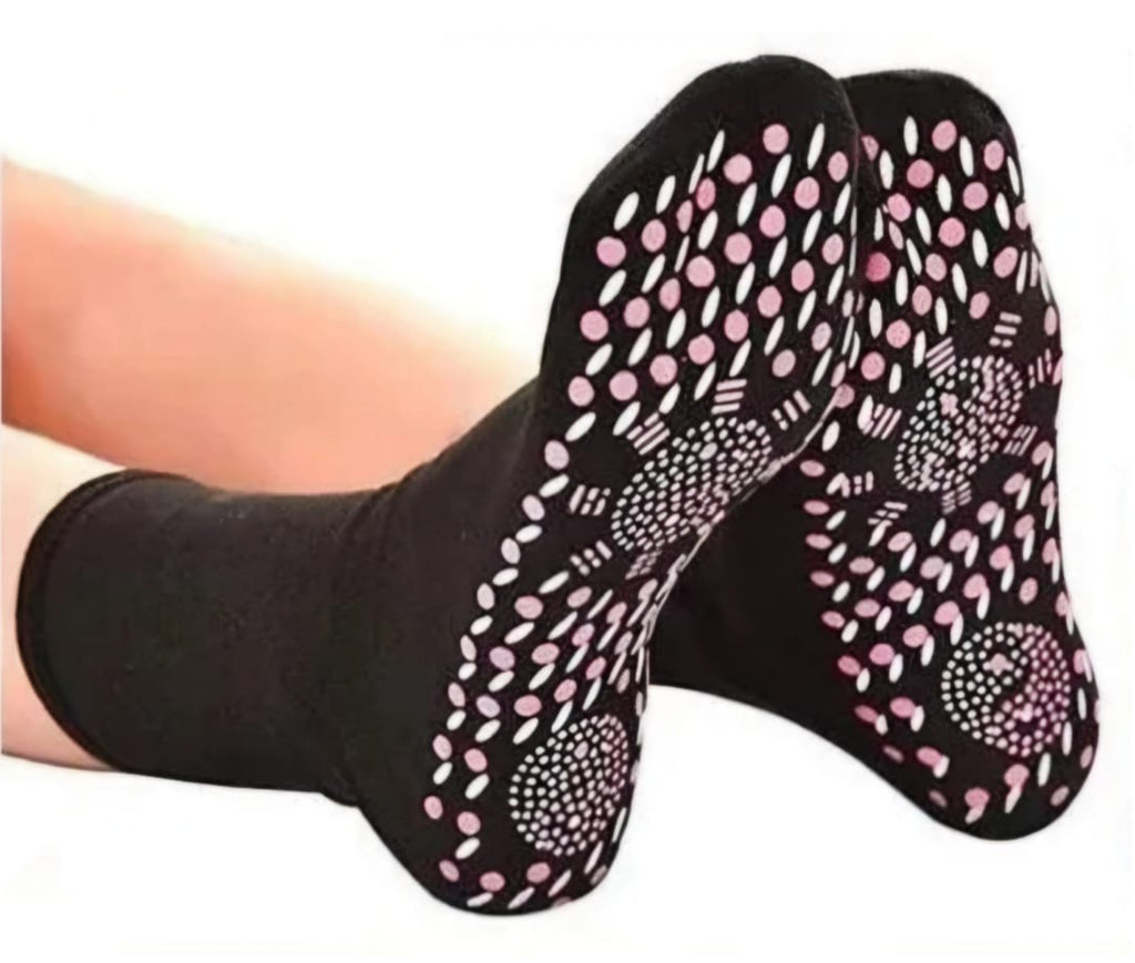 Tourmaline self heating magnetic slimming health socks. Comfortable and breathable, relieve fatigue and pain. Improve blood circulation. Boost metabolism. One size fits most.