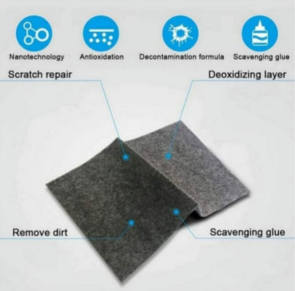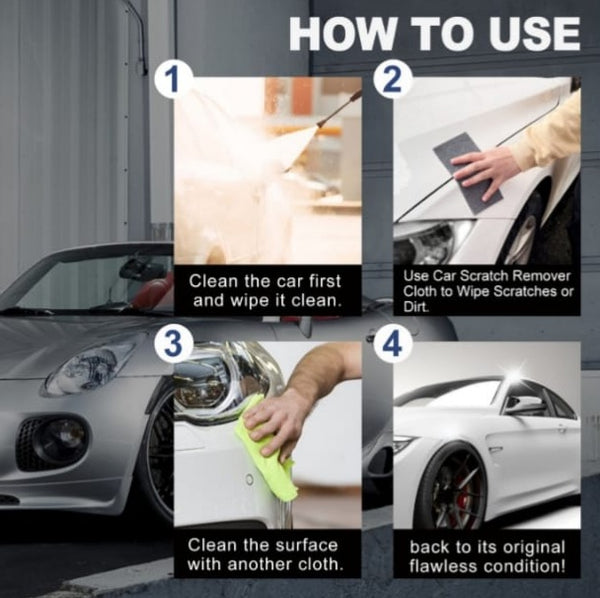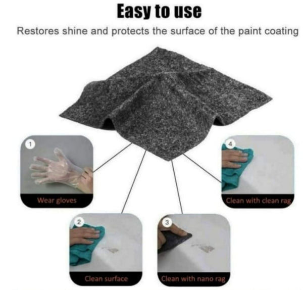 nano scratch repair cloth effectively remove small scratches from car paint surfaces. Powerful scratch removal without damaging the paint. Simply clean and dry the surface before use, wear gloves, and wipe away scratches and dirt with the smart towel. Finish off by cleaning the surface with another cloth.