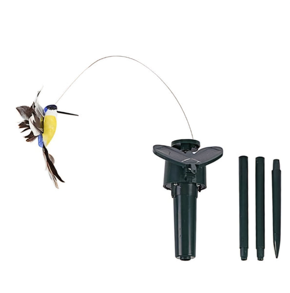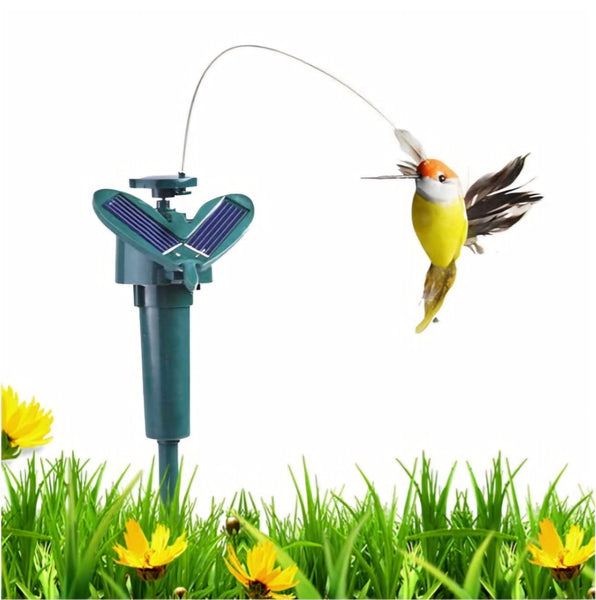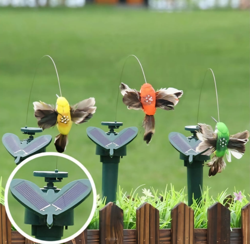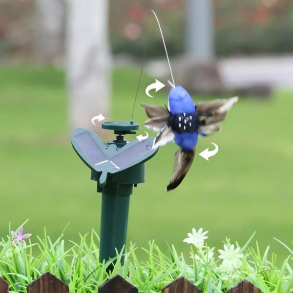 Small solar panels convert sunlight into hummingbird energy. The brighter the weather, the more active her flight.