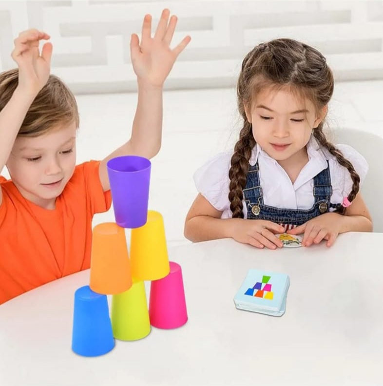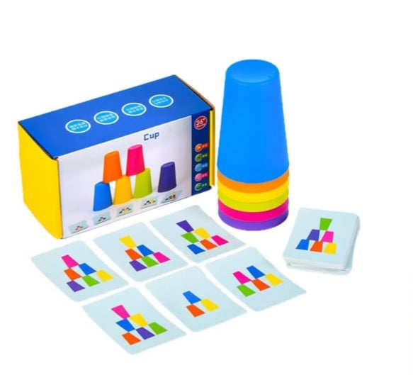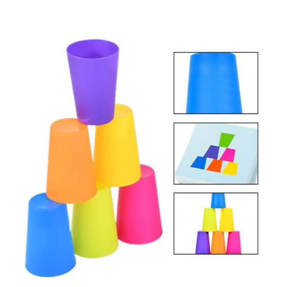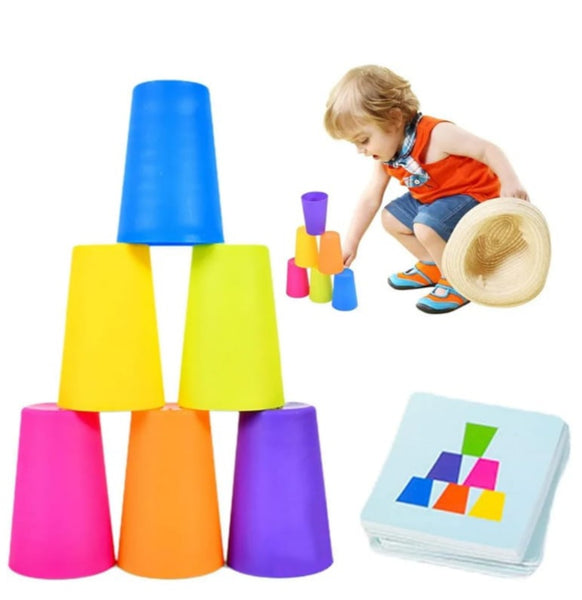 These stackable cups are designed with the perfect size for kids to grip easily. Improve their hand-eye skills, fine motor skills, and problem solving. 6 colorful cups per set.