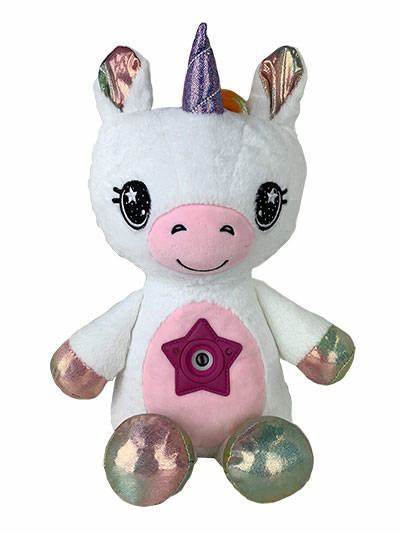 Star Belly Night Light Magical Moving Patterns: The Star Belly Dream Lites stuffed animal is a soft and comfortable toy that creates glowing stars and fun shapes that drift over walls and the ceiling. A Rainbow Of Colours: Your child will love cuddling with their plush friend day and night. Simply pressing on the belly changes the light to six different colours. Soothing Sleep: Featuring a softly glowing belly that makes a comforting night light for your child. Great for home, travel, sleepovers, playtime and more Choose a unicorn, puppy, kitty or dinosaur. Item Dimensions LxWxH 18.5cm x 14cm x 37cm