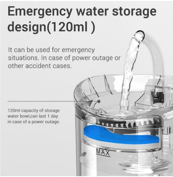 Automatically circulates the water, ensuring your pet always has fresh, clean water to drink. Intelligent temperature control system that maintains the water temperature at a constant level. 2 Water flow modes (tap mode/fountain mode). Fully Transparent (Let your pets see the water clearly). Powered by USB cable. Maximum capacity: 2 liters.